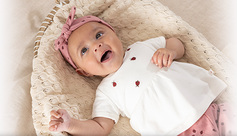 Cute as can be! Sweet little ladybird allover on pointelle and fancy fabric. Shades of pink, berry and offwhite.